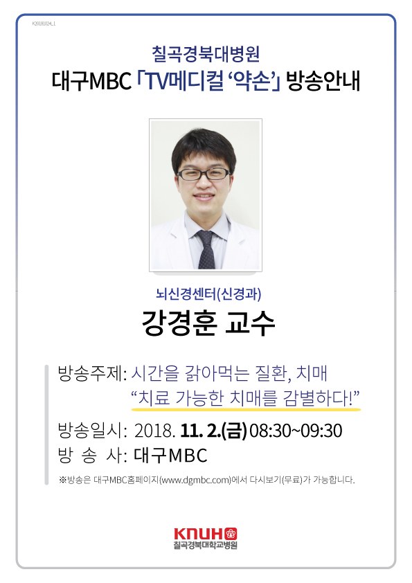 | [방송안내]대구MBC 'TV메디컬 약손' 강경훈 교수 편 방송안내 | ||