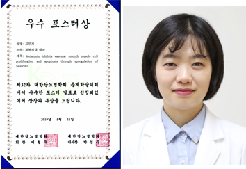 김민지 교수는 ‘멜라토닌이 세스트린2(Sestrin2)의 상향조절을 통해 혈관 평활근의 증식과 세포사멸을 억제한다(Melatonin inhibits vascular smooth muscle proliferation and apoptosis through upregulation of Sestrin2)’를 주제로 멜라토닌과 같이 혈관세포에서 세스트린2를 활성화할 수 있는 약물이 죽상동맥경화증의 잠재적인 치료 타깃이 될 수 있음을 제시한 점을 높이 평가받아 이번 상을 수상했다.