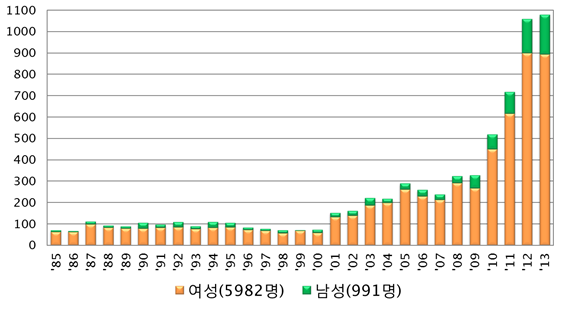 < 경북대학교병원 유방갑상선외과 갑상선암 수술 통계(1985~2013)>