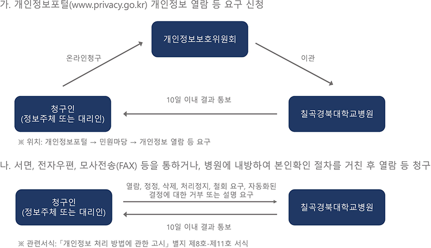 ② 권리 행사는 다음의 방법으로 하실 수 있으며, 병원은 이에 대해 지체없이 조치하겠습니다.